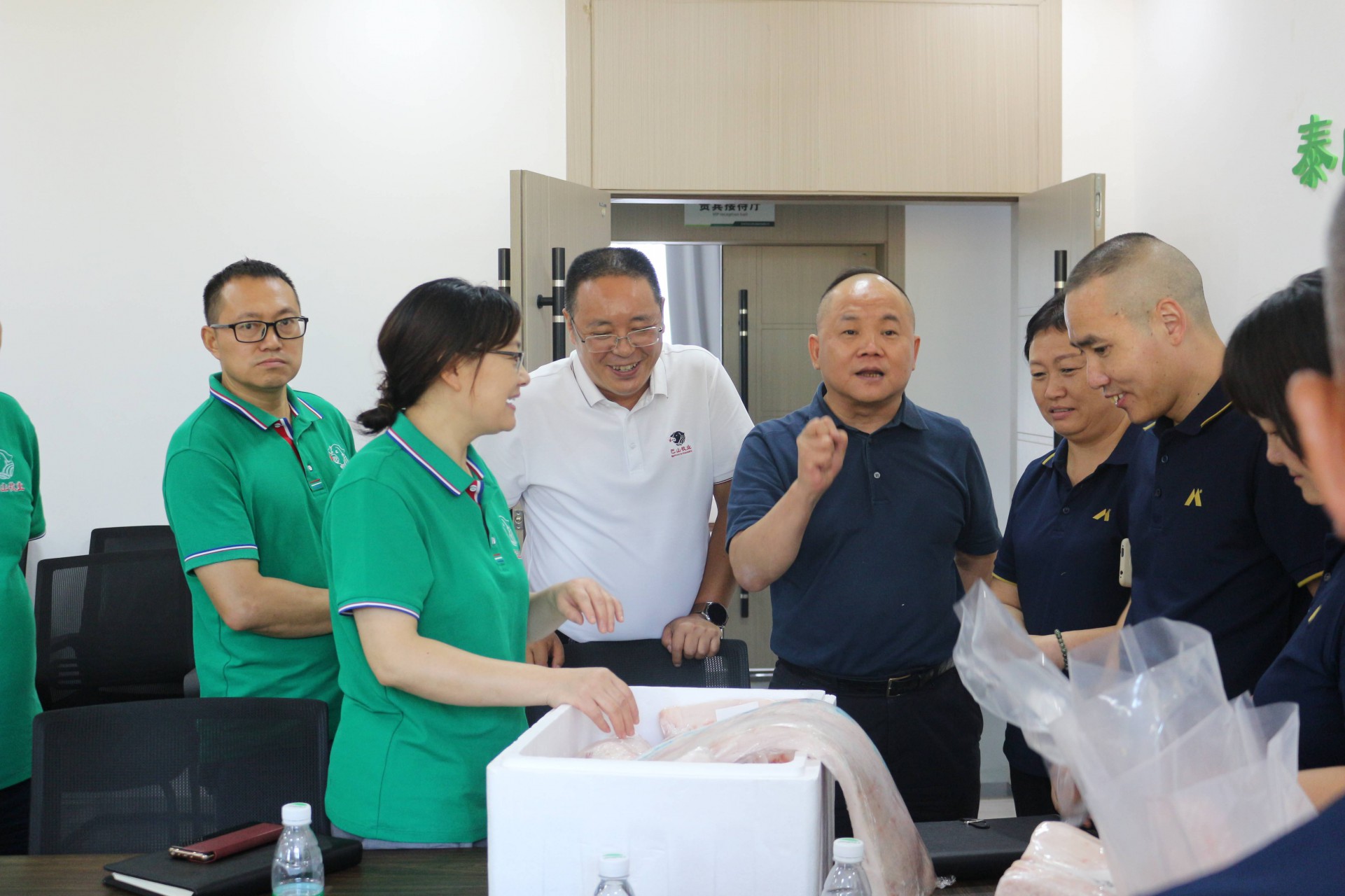 2022年8月17日眉州東坡集團(tuán)董事長(zhǎng)王剛率公司副總陸陽(yáng),王家渡食品公司研發(fā)部總監(jiān)劉國(guó)民,王家渡食品公司供應(yīng)鏈副總監(jiān)王艷梅、王家渡食品公司采購(gòu)部經(jīng)理冷燕、集團(tuán)供應(yīng)鏈采購(gòu)經(jīng)理何正昔、四川區(qū)域采購(gòu)經(jīng)理段永寧,董事長(zhǎng)助理蘭寧來(lái)我公司參觀考察,我公司董事長(zhǎng)兼總經(jīng)理張育賢率副總劉建春,生產(chǎn)負(fù)責(zé)人譚欽,質(zhì)量首席官秦芬,養(yǎng)殖總經(jīng)理廖坤,采購(gòu)經(jīng)理秦兵等高管接待并詳細(xì)介紹了公司發(fā)展歷程及發(fā)展規(guī)劃.