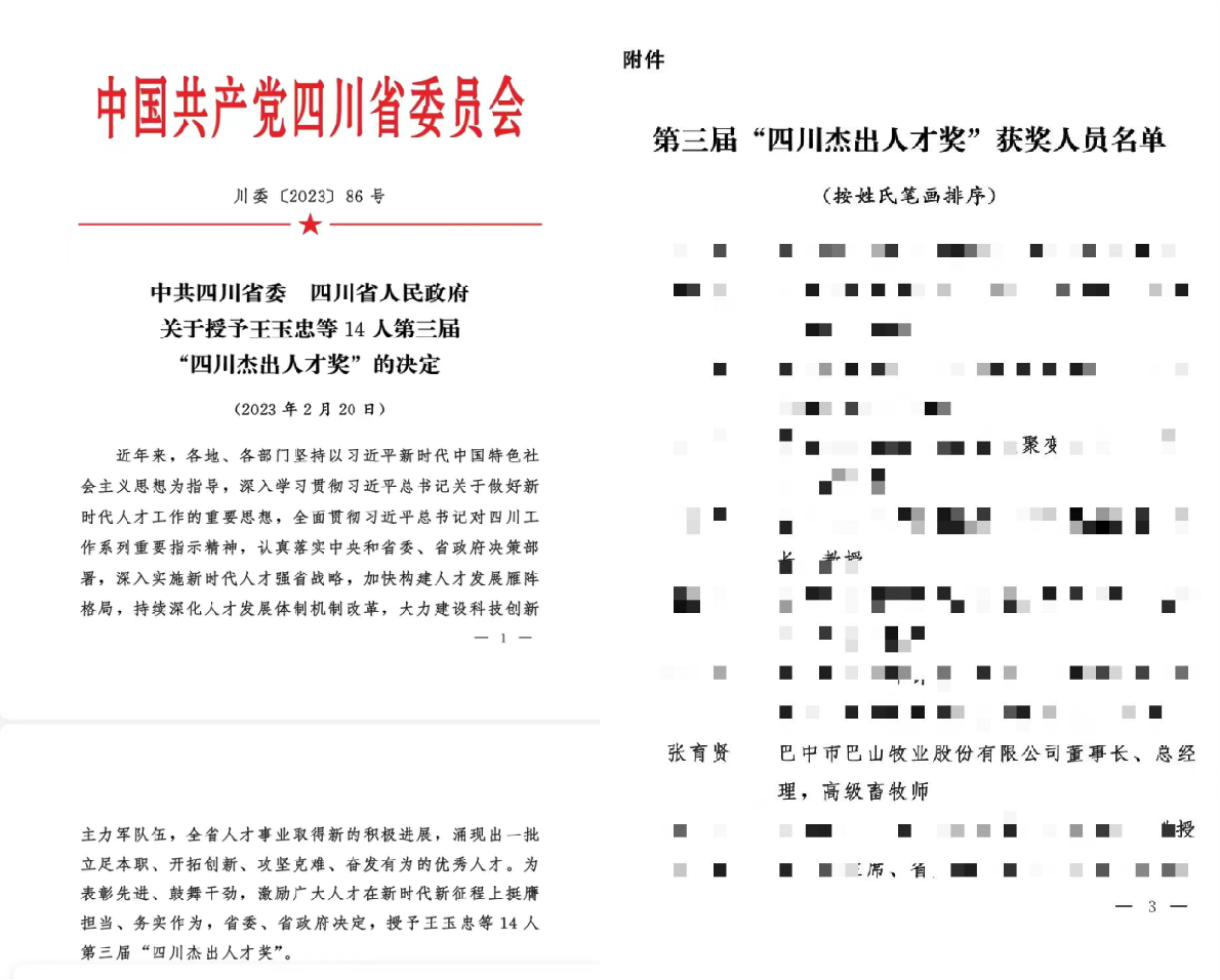 熱烈祝賀巴山牧業(yè)集團(tuán)張育賢董事長(zhǎng)榮獲四川省“四川杰出人才獎(jiǎng)”